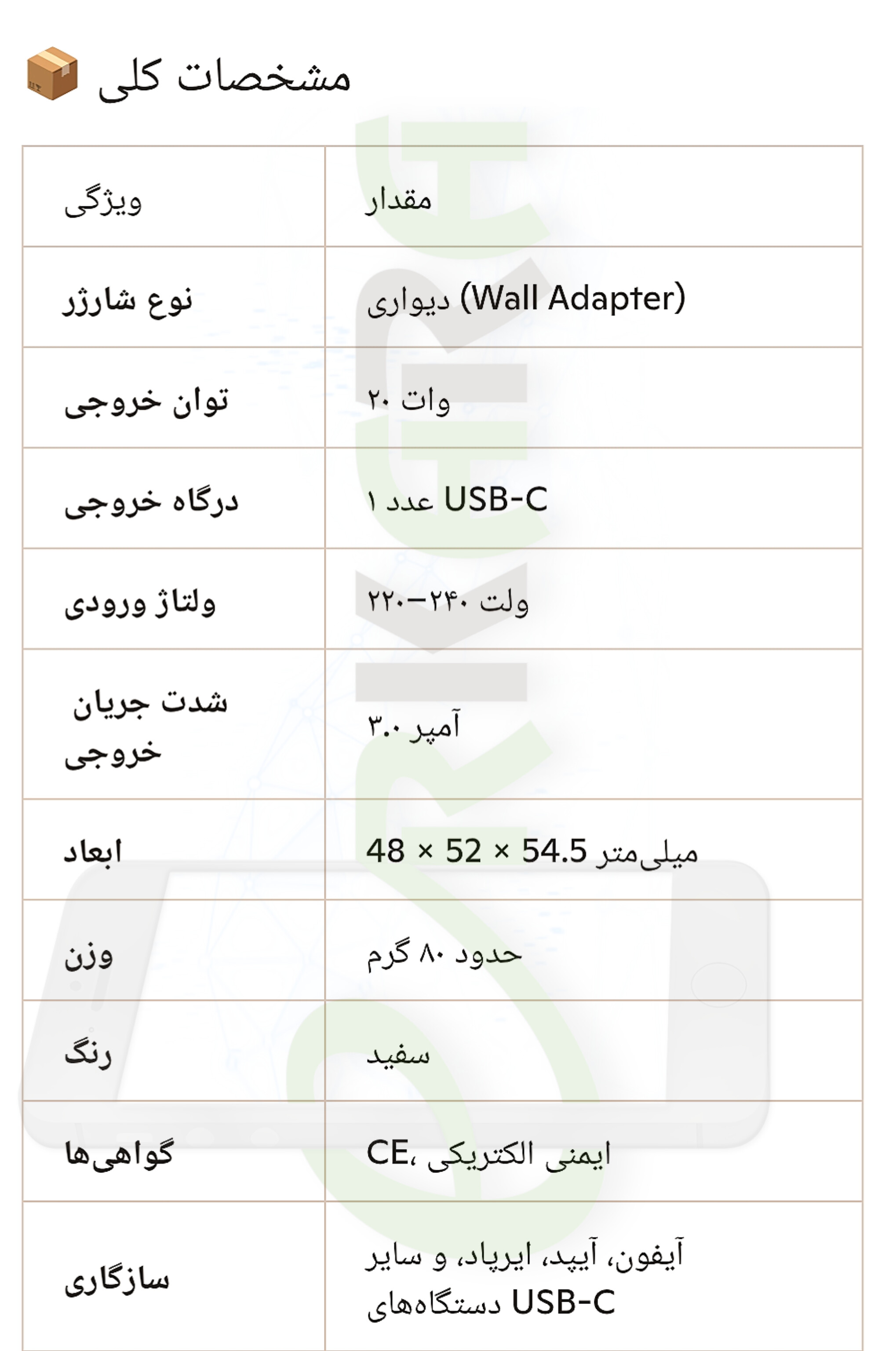 شارژ اصلی آیفون 20 وات
